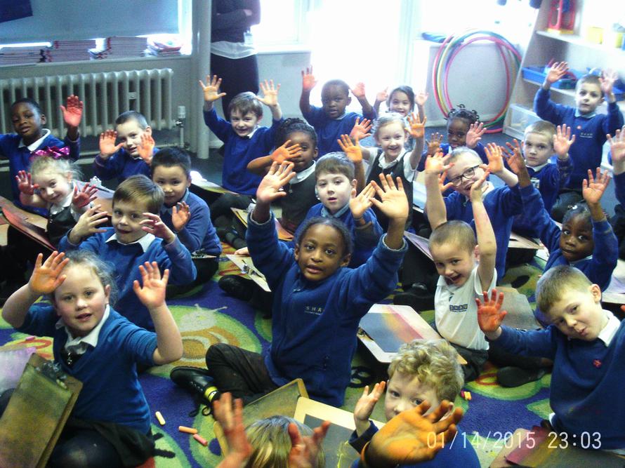 We are lucky enough to have Ingrid Anderson, an artist, working in year one for the first time! We got very messy with chalk pastels when we were drawing Tower Bridge at sunset.