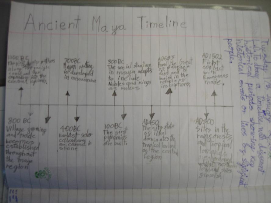 We have been learning about time in the context of the Mayans. We learned how to draw timelines to shwo improtant events.