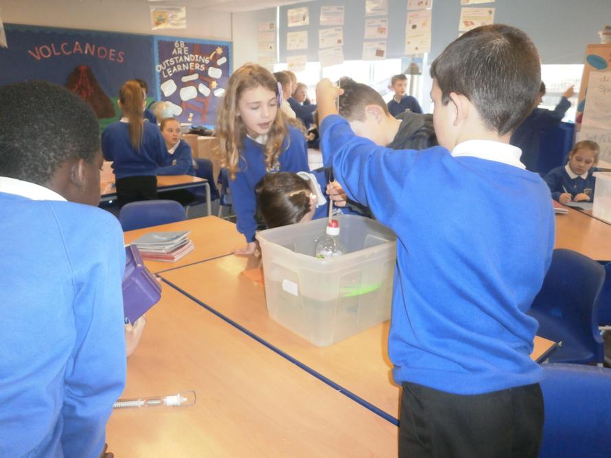 Yesterday we enjoyed a science rotation afternoon. The children had the opportunity to try out some exciting experiments. This is 6B making lava using: vegetable oil, water, salt and red food colouring for effect.