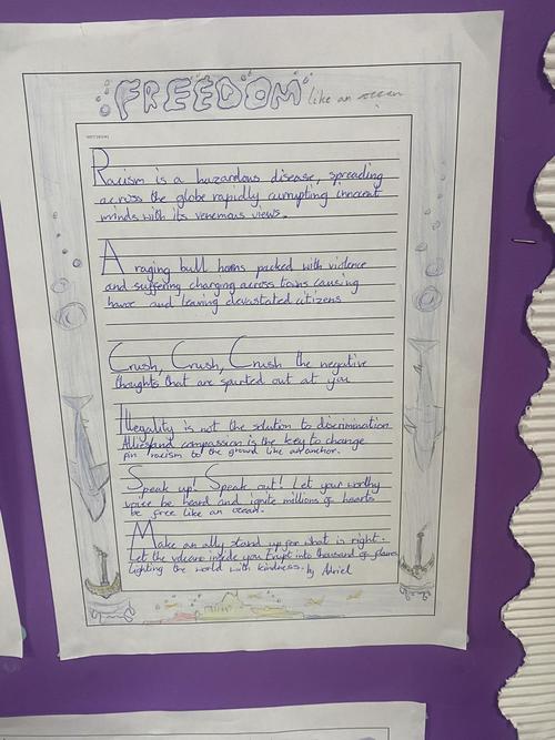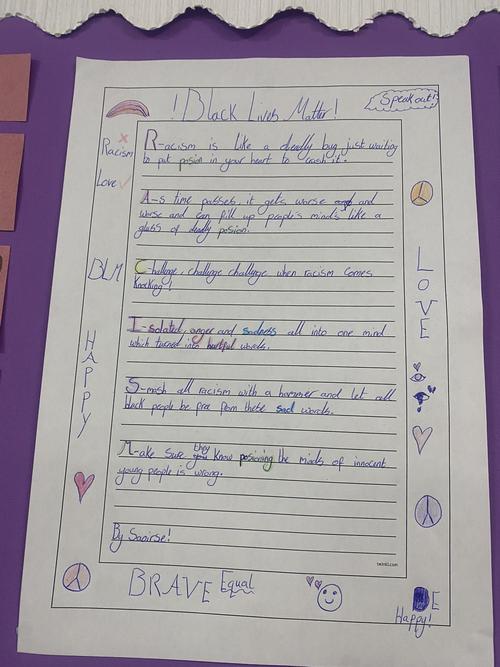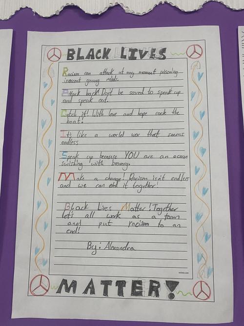 Our current unit in English focusses on the introduction to the Black Lives Matter movement and how poets raised awareness of this through poetry. We have started to look at 4 poems and watch performances of them. This has allowed us to understand the protest and explore the poems in more detail.