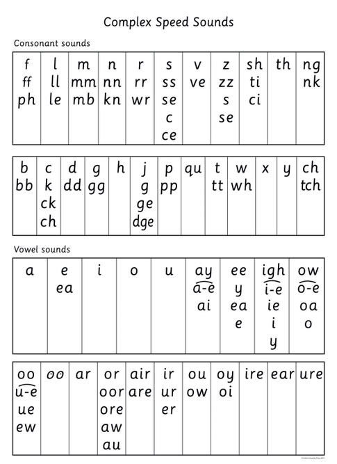 Children learn the English alphabetic code: first they learn one way to read the 40+ sounds and blend these sounds into words, then they learn to read the same sounds with alternative graphemes/spellings.